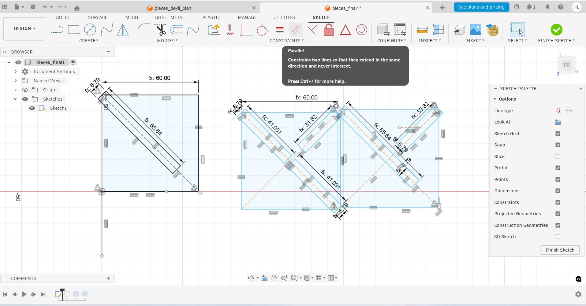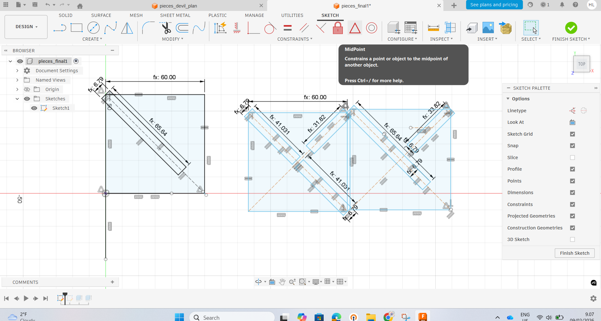 Afterthat , I started to design three pieces . I used midpoints constraint and parallel constraint to create the press-fit slot so at the last stage I can assemble these three pieces.