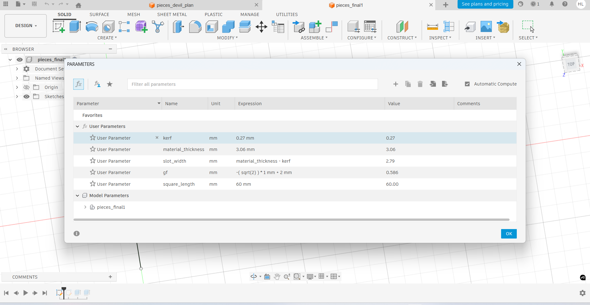 Then I had slot_width by taking thickness of the material minus the kerf .