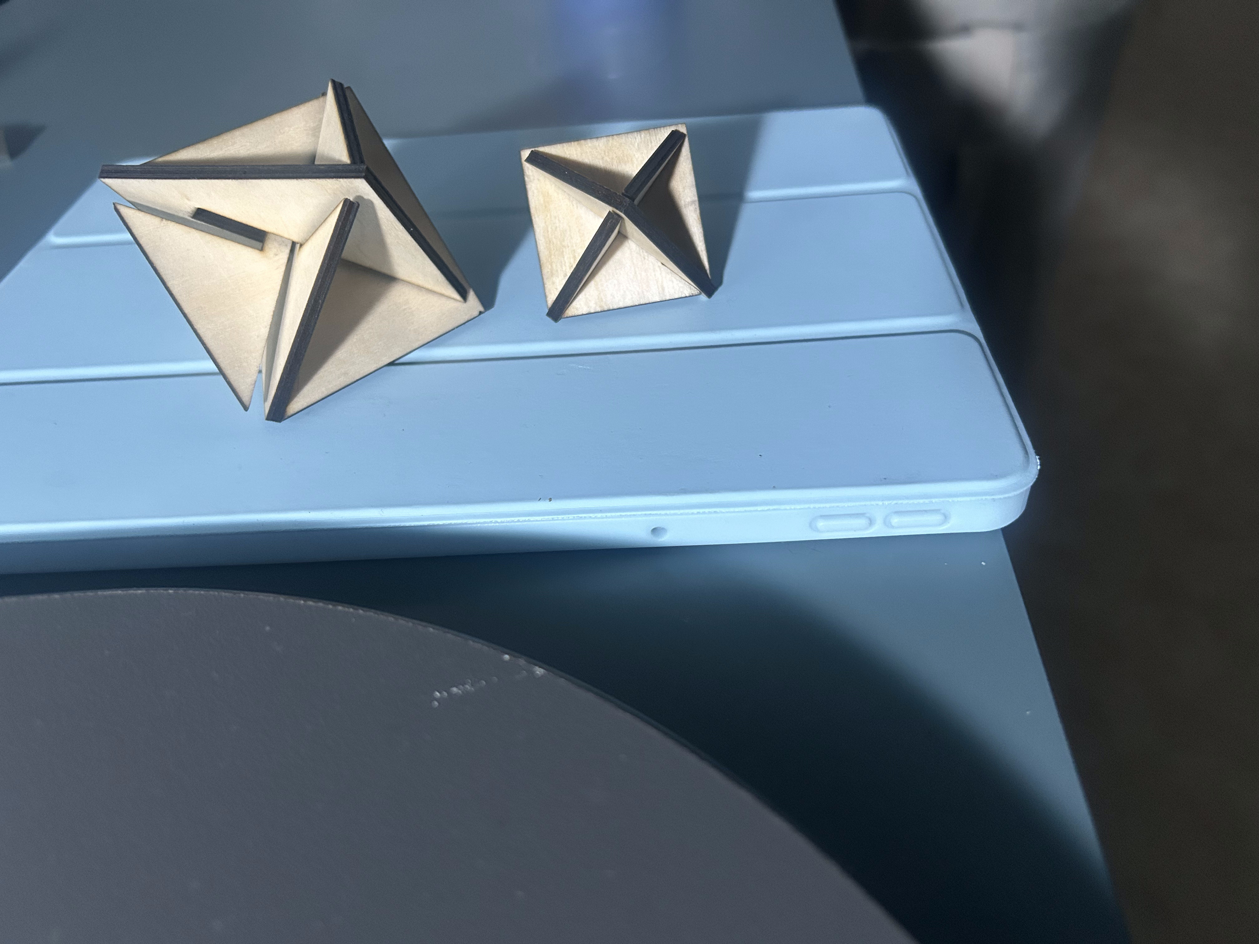 For individual project, I try to desgin a press-fit-triangular pyramid made from three pieces . I was motivated while watching the netflix series “Devel Plan” where player could collecet square pieces and assemble them into a triangular pyramid to get a suprising reward .